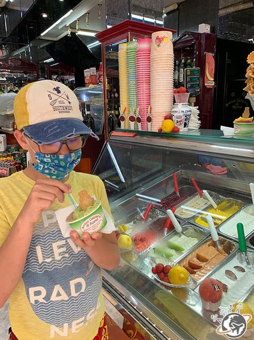 Après la baignade dans les eaux turquoise, la pause glace s’imposait mais pas n’importe laquelle ! Les meilleures glaces italiennes se trouvent chez Antica Gelateria di Roma dans le centre-ville. Je vous les recommande avec gourmandise.