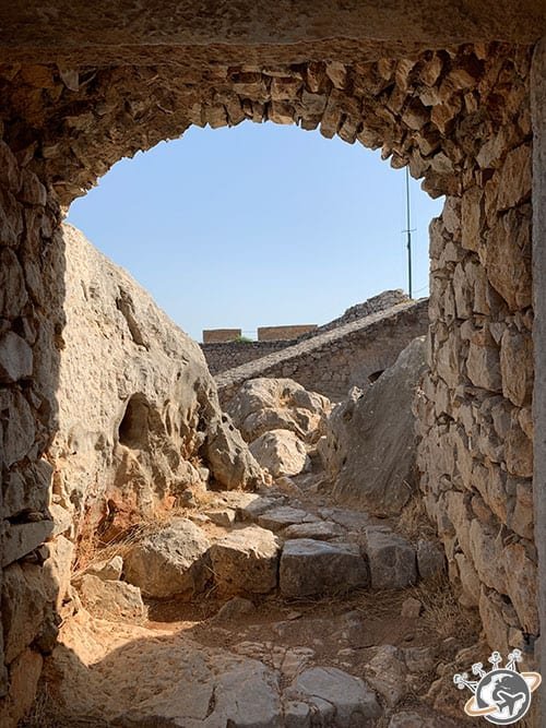 Située à 216 m d’altitude, la citadelle Palamède – ou Palamidi – est une fortification composée de huit bastions (vous savez, des ouvrages polygonaux à deux faces et deux flancs en saillie sur une enceinte – dixit le Larousse).