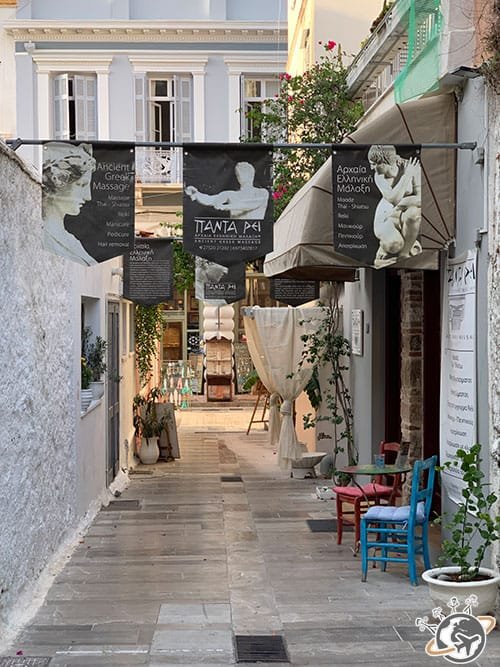 J’ai adoré nous perdre dans ses jolies ruelles pavées et ombragées où se succèdent bâtiments anciens et maisons colorées, petites boutiques et restaurants, particulièrement rue Staikopoulou.