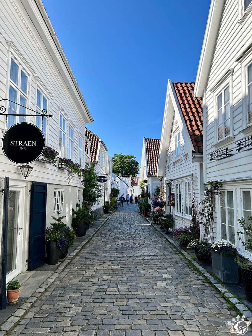 Sur terre, nous nous sommes promenés dans les ruelles qui s’entremêlent, avons découvert l’incontournable rue colorée – très colorée – Ovre Holmegate, dégusté un nouveau roulé cannelle et nous sommes perdus entre les maisons blanches typiquement norvégiennes de la vieille ville au-dessus du port. Je n’étais pas convaincue par cette dernière et je n’ai pas regretté d’y faire un tour.