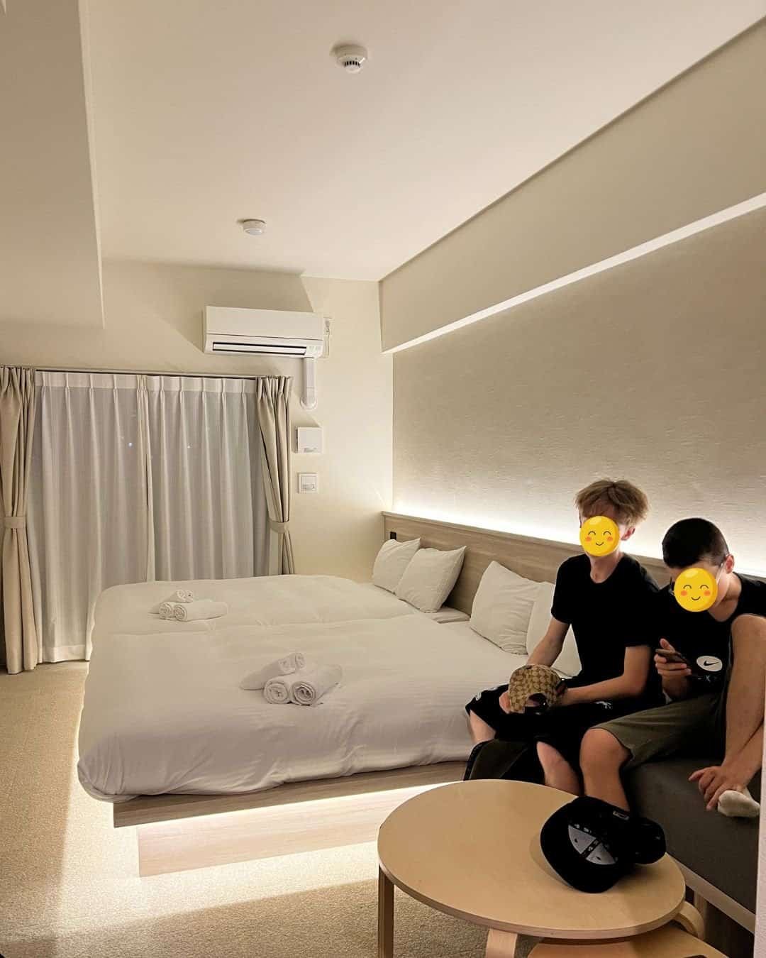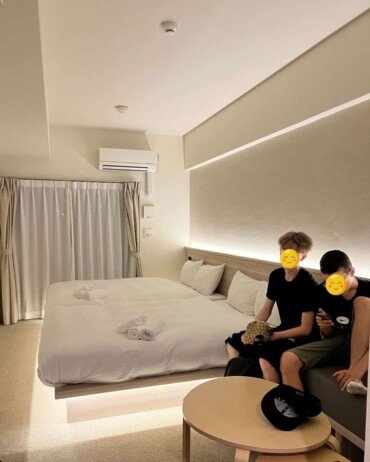 Heureusement, l’appartement est à la hauteur : spacieux, lumineux, avec une vraie séparation nuit/jour, un mini salon, une cuisine, une machine à laver, et des futons confortables. Franchement, on aurait bien échangé celui-ci contre notre mini-boîte de Kyoto. Si vous voyagez avec des enfants ou ados, ce genre d’espace fait toute la différence.