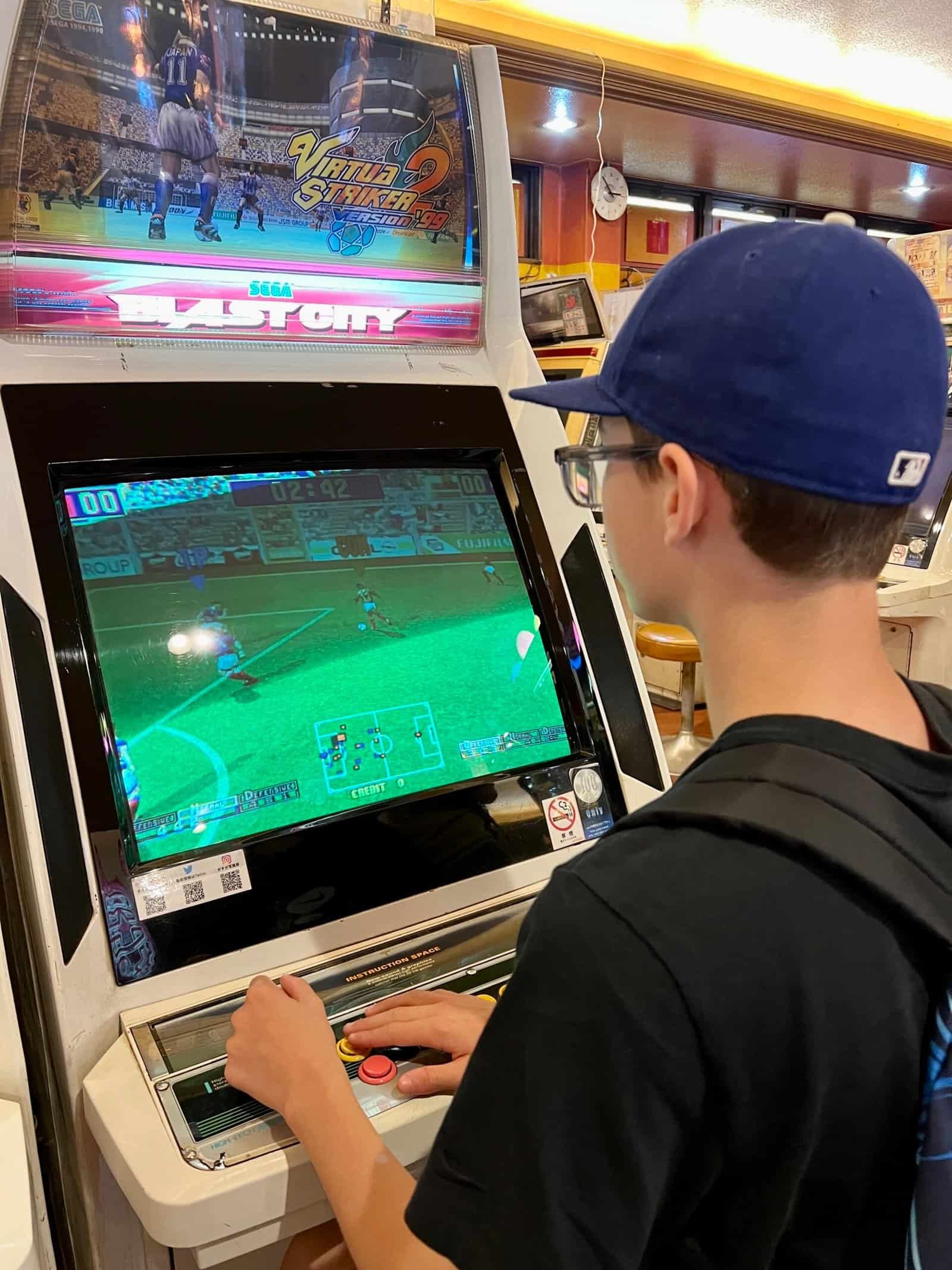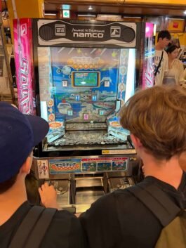 On teste ensuite le jus de fruits panaché chez Sennariya, LE café qui aurait inventé la recette. C’est frais, sucré, très local. Puis on tombe sur une salle d’arcade, on y passe un bon moment avant de reprendre notre chemin, une glace à la main.