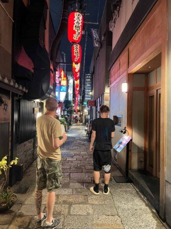 La rivière sent mauvais, les trottoirs sont sales. L’ambiance festive d’Osaka que j’avais lue… on ne l’a pas trouvée. Peut-être trop crevés, trop exigeants, ou trop habitués au calme des temples bouddhiques.