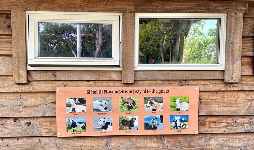 Ce ne sont pas les nouveaux copains des nados, non, ce sont les chèvres résidentes du mont Fløyen. Pour les trouver, continuez tout droit après les belvédères. Ces chèvres cachemire nées en 2020, ne sont pas enfermées dans un enclos, elles ont pour mission de débroussailler et de nettoyer la montagne.