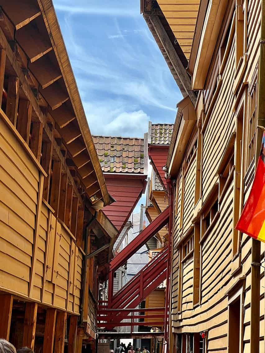 Il est vivement conseillé de faire un tour dans le vieux quartier de Bergen, où se trouvent des édifices en bois traditionnels juste au-dessus du port. C’est certes la carte postale de Bergen avec ses restaurants en bord de port, mais je ne m’attendais pas à y trouver une myriade de boutiques et de galeries étroitement alignées le long de ruelles pavées…