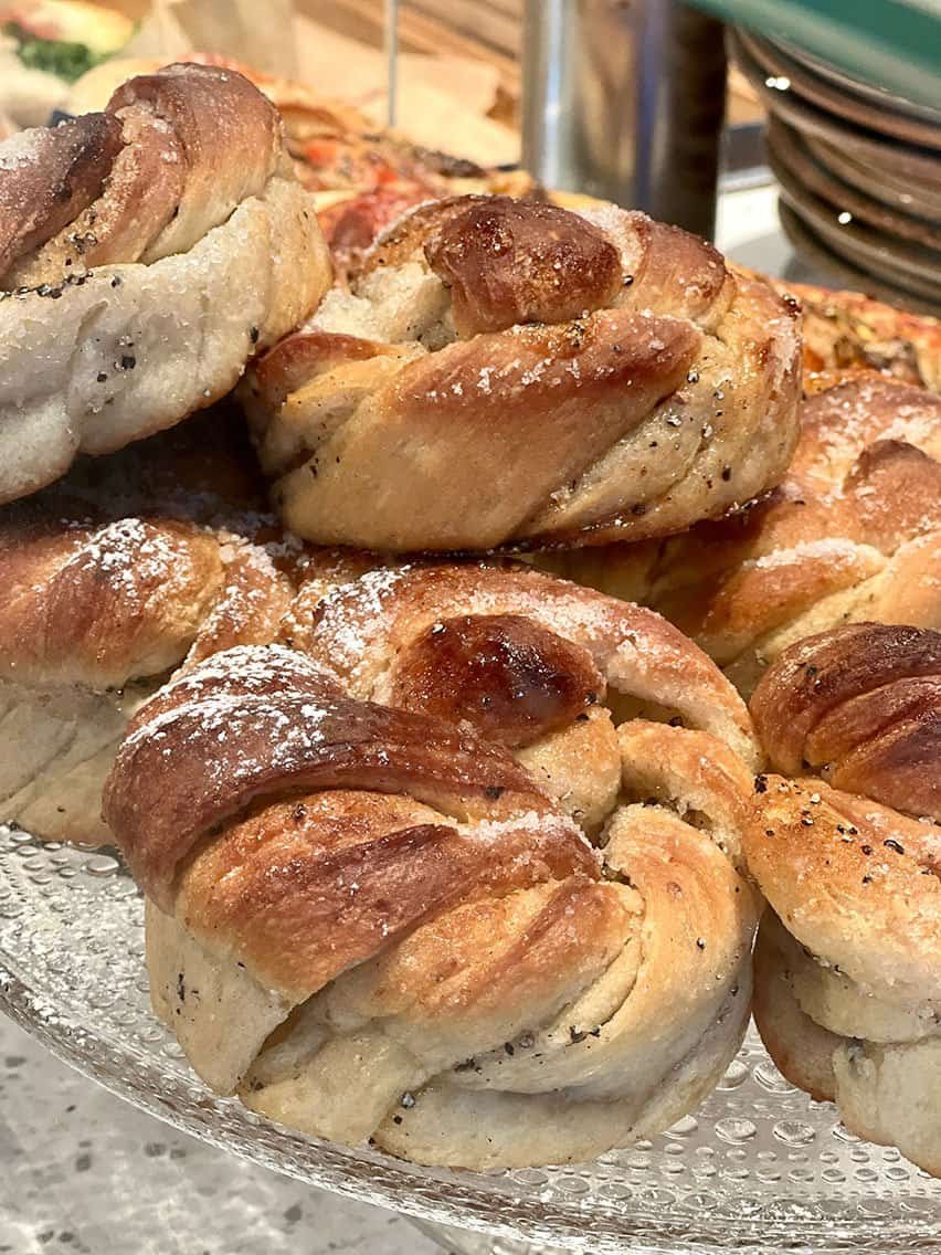 Pour le dessert, nous avons choisi des… roulés cannelle évidemment. Ils étaient énormes et sortaient du four. Encore de bons candidats pour notre concours (et non, je ne suis pas encore écoeurée).