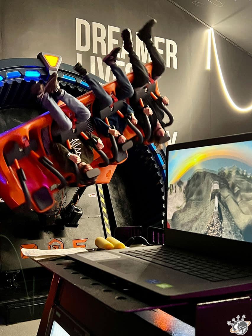 - un Hurricane ?!? Plus besoin d’aller dans une fête forraine, tout est là : 4 sièges accrochés à un axe qui permet une rotation à 360° et 14 aventures différentes à suivre dans le casque de VR. Les garçons ont ainsi vécu les sensations d’une course folle à vélo sur la muraille de Chine comme s’ils y étaient. Et moi ? J’avais la nausée rien qu’en les regardant 🙄