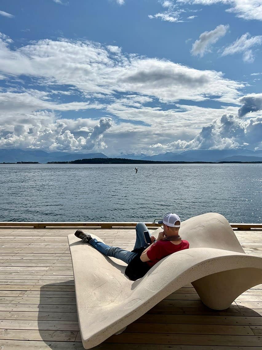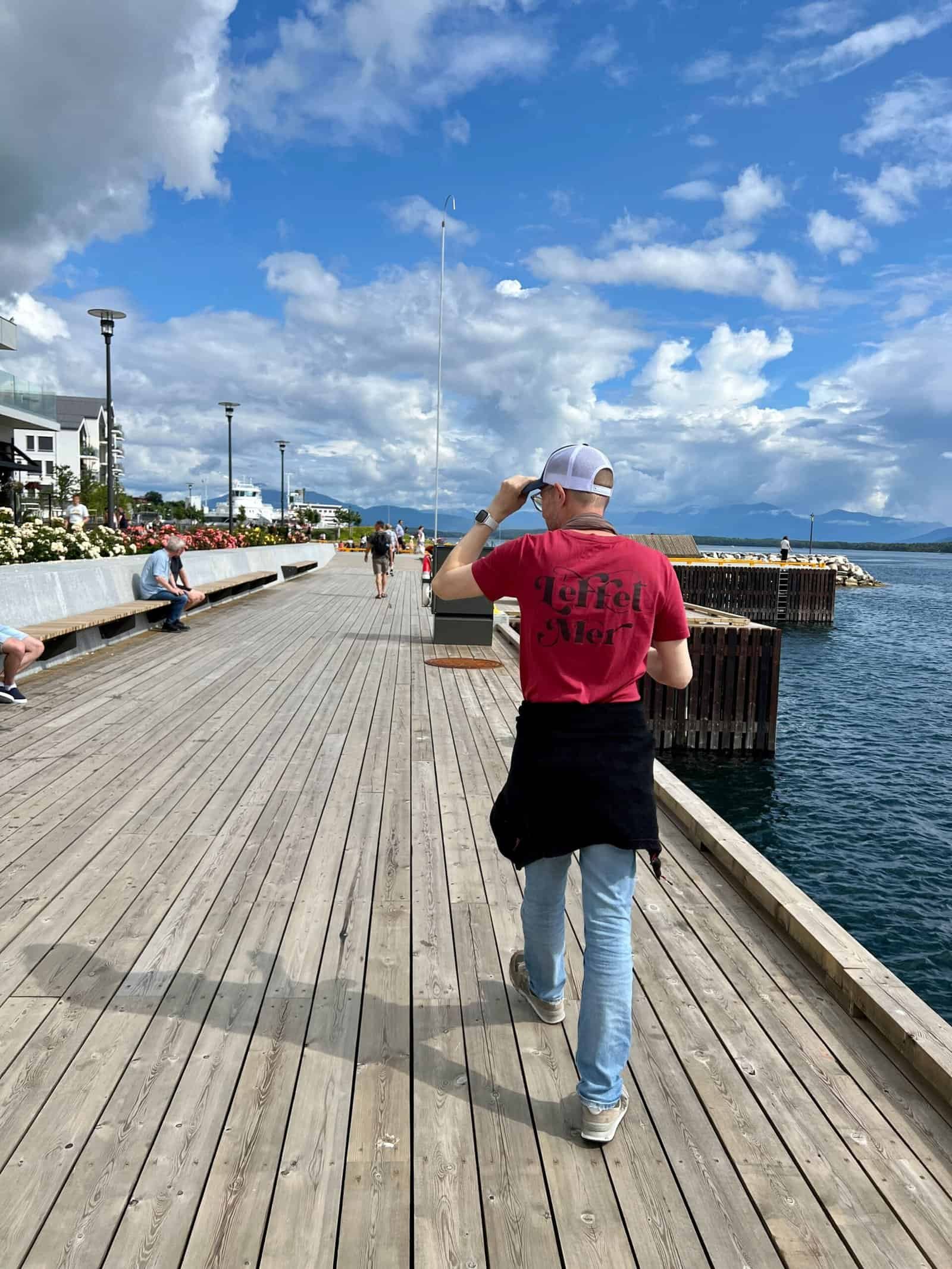 Molde s’annonçait comme l’escale randonnée sous la pluie, d’après la météo… et bien pas du tout. Je me demande si le 13 ans n’aurait pas préféré, car j’aurais peut-être cédé pour un taxi… Ça aurait été dommage pour la chouette balade, mais aussi pour le premier roulé cannelle qui a officiellement ouvert le concours.