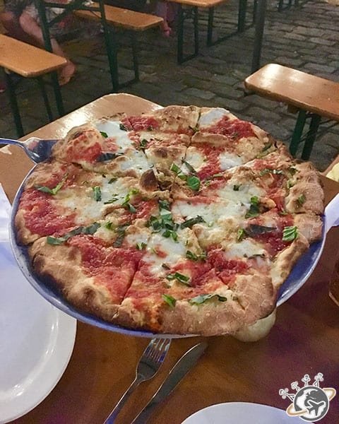 La meilleure pizza de New York est chez Adrienne’s (Financial District). Il y a des tables dans la rue derrière la pizzeria. C’était particulièrement agréable parce qu’il faisait bon. Nous avons commandé une pizza pour nous 3, ce qui nous a bien suffi.