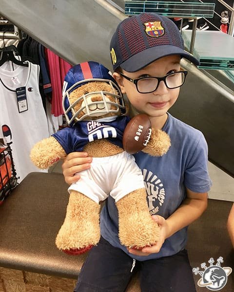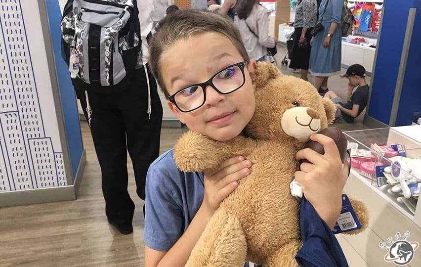 Nous n’avons pas du tout eu le temps de faire les boutiques. Grand Nain a trouvé ses baskets dans le premier Footlocker rencontré. C’était donc une affaire qui roule. Pour Petit Nain, point de baskets – il s’en fiche comme de sa première chaussure – humour à 2 balles – mais il aime encore beaucoup les peluches. Je lui ai donc proposé d’en créer un chez Build a Bear (crée un our :)).