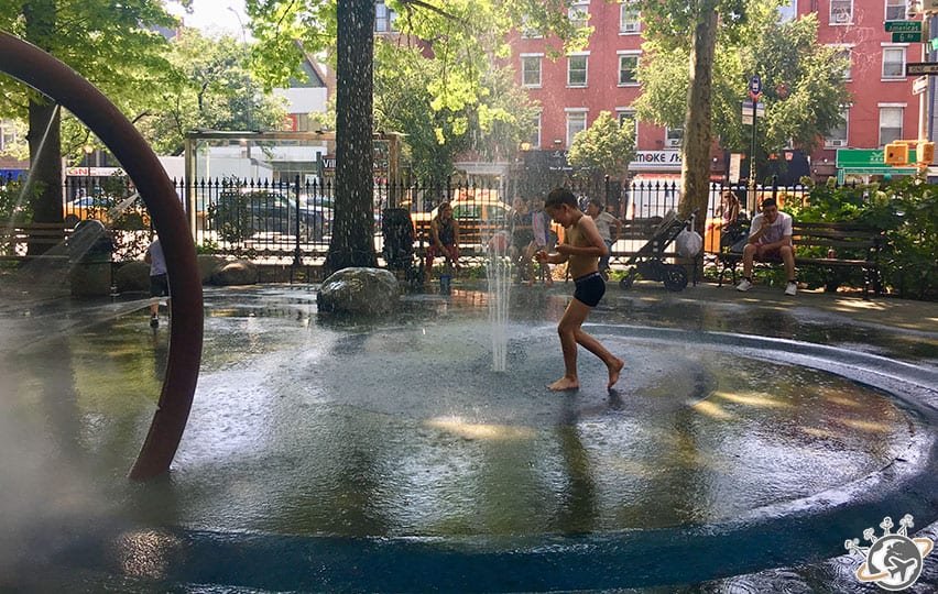 Les Nains avaient très chaud, et nous aussi, la pause dans le petit square avec des points d’eau a été plus qu’appréciée. Ils s’en sont donnés à coeur joie et moi j’ai retiré mes chaussures pour marcher dans l’eau fraiche. Un kiff.