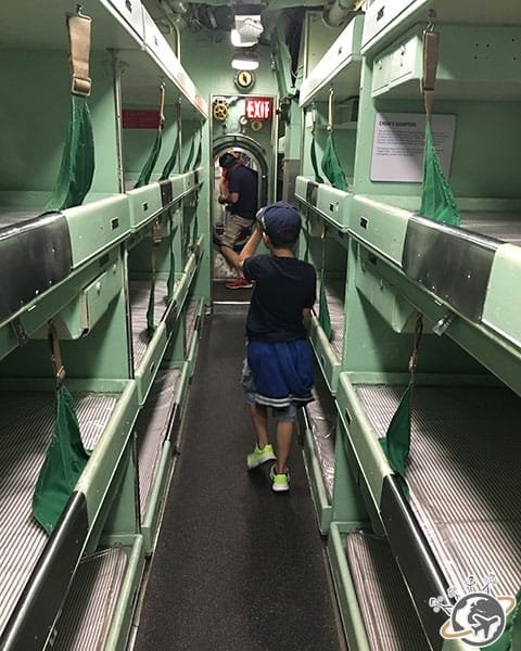 Juste à côté, il ne faut pas manquer la visite du sous-marin l’USS Growler. Après un petit musée qui raconte son histoire – que nous avons passé rapidement – nous avons découvert l’étroitesse des lieux, les nombreuses couchettes un peu partout, dans le couloir, à côté des missiles… c’était très impressionnant.