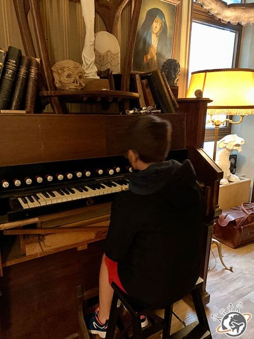 On commence par entrer dans un cabinet de curiosités dont une très jolie pieuvre d’intérieur et un piano un peu particulier. Après quelques minutes à observer tous ces objets incroyables et terriblement bien choisis, notre hôte nous emmène vers « la Porte du Temps » du professeur Artimus, une faille spatio-temporelle qui va nous transporter tout droit en pleine Renaissance italienne.