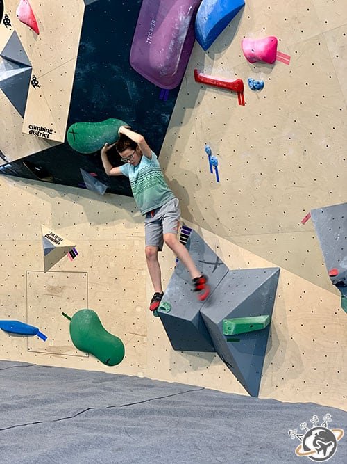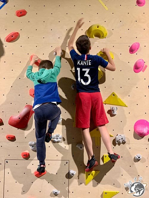 Depuis que nous avons grimpé à Fontainebleau en famille, le 11 ans me tanne pour prendre des cours ! Bon aussi pour être avec son meilleur pote. Mais il n’y a jamais de place car on manque de clubs dans notre quartier. Alors quand Climbing District s’est installé dans le 17e, je lui ai tout de suite réservé un stage pour la 1ère semaine des vacances (et son pote aussi, je vous laisse imaginer l’extase) !