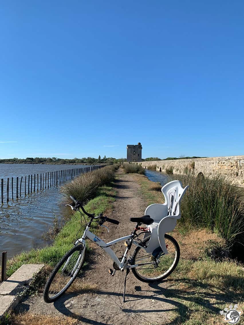 Les nados avaient envie de faire du vélo et moi de voir le coucher de soleil. Après dîner nous avons donc mis les vélos à quai et sommes partis vers la tour Carbonnière, spot réputé pour les couchers de soleil et les flamants roses.