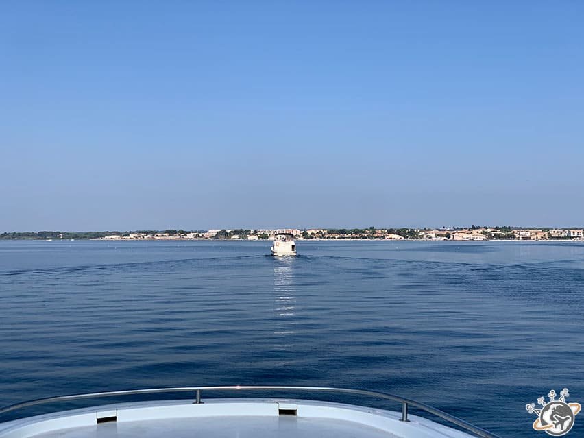 Captain Népoux était trop content d’y naviguer. On a vraiment l’impression d’être en mer, on sent la brise, l’horizon est majoritairement bleu, on distingue les petites villes tout autour de l’étang, il fait moins chaud…
