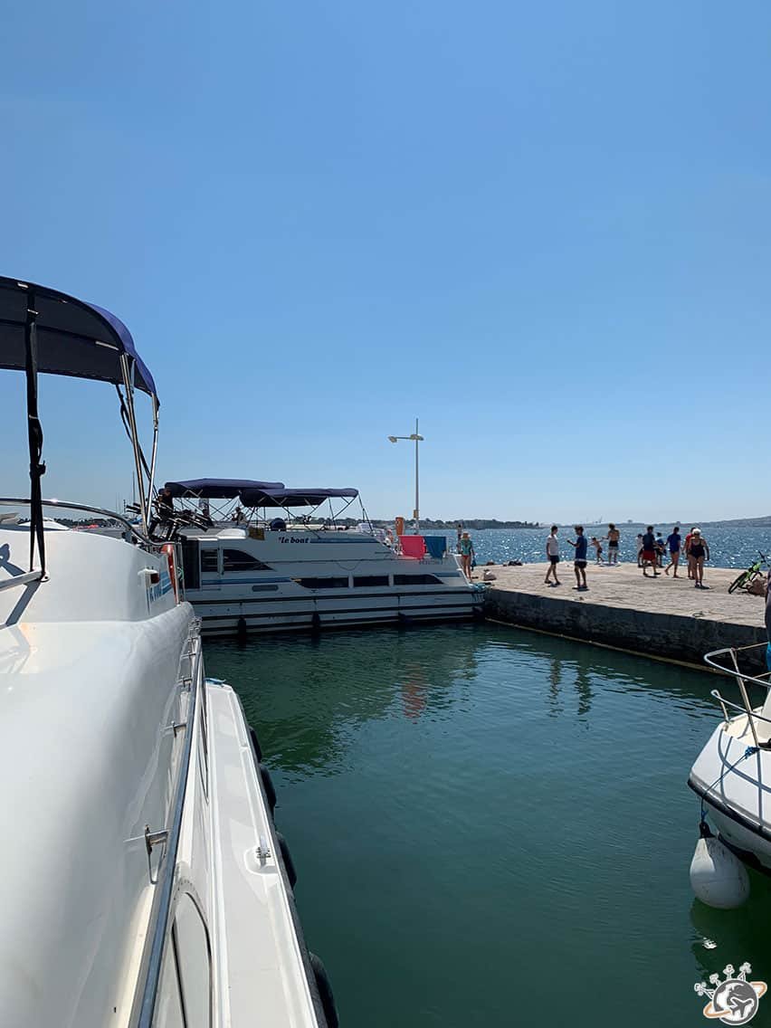 Les places étant toujours incertaines, nous avons appelé la capitainerie pour « réserver » notre place et préciser que nous serions deux bateaux. Et top du top, cette fois on est à côté. Beaucoup plus pratique ! Le mari d’Amandine nous a également rejoints.
