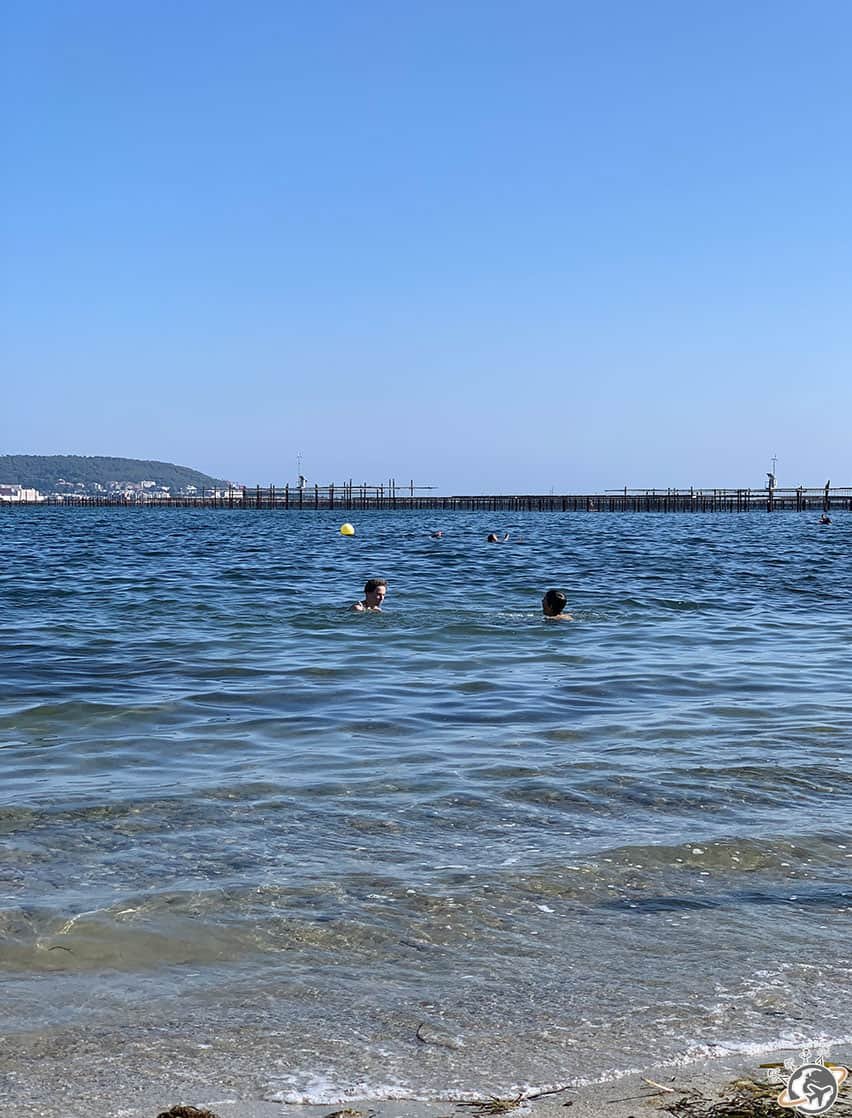 J’aime particulièrement son phare à l’entrée. On s’amarre, on règle les frais et on fait le tour du port à pied, direction… la plage, comme d’habitude. L’eau est très agréable et peu profonde, parfait pour Rose. Les garçons veulent rejoindre le ponton au large. Ils pris goût aux plongeons 🙂