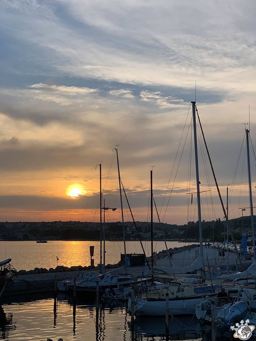 Le soir, le soleil se couche à gauche du port, derrière la colline. On est bien. Le 16 ans se refait une séance de plongeons avant d’aller se coucher.