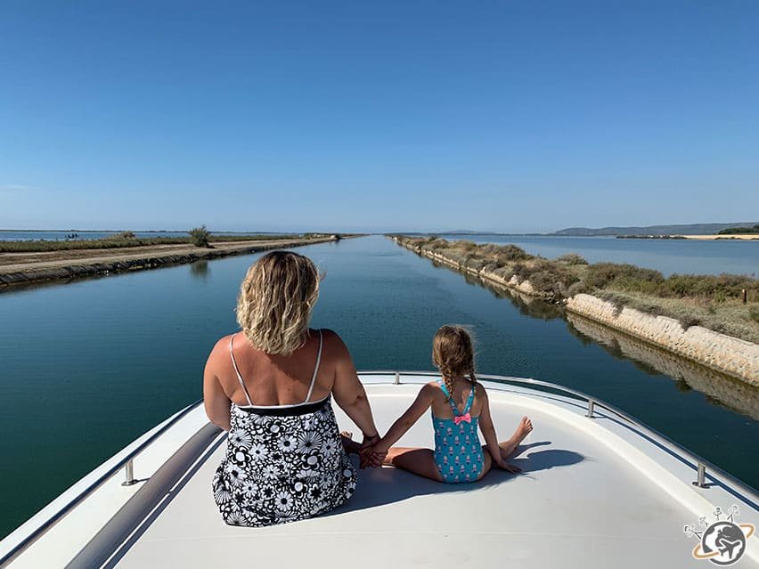 Pour la Camargue bien sûr, une très belle région qu’on a pris plaisir à découvrir. Pour le bateau évidemment, on aime vraiment ce type de vacances au fil de l’eau, de ports en amarrages sauvages, d’activités nautiques en plages, de repas sur le pont, de regards perdus à l’horizon. Et enfin pour l’avoir vécu en famille ET entre amis, les nôtres et ceux de nos amis. Nous faisions une joyeuse bande avec nos nados et petites choupettes.