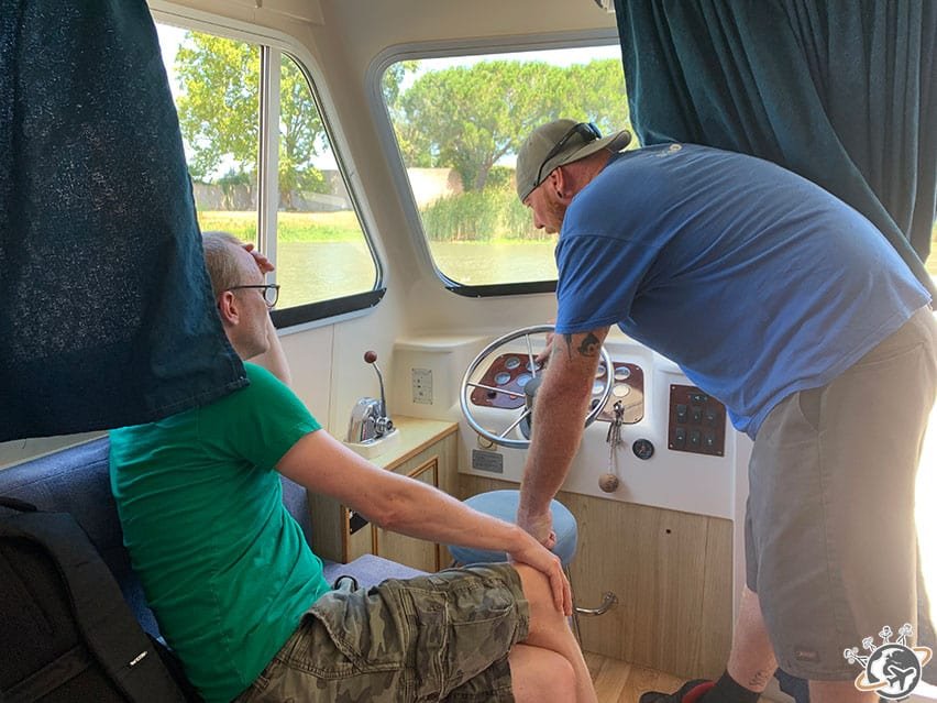 Comme la dernière fois, Captain Népoux a été formé par une personne du Boat sur tout ce qu’il faut savoir sur le bateau et en navigation. Après quelques ronds dans l’eau, tout était ok, nous étions libres de commencer notre navigation sur le canal du Rhône.