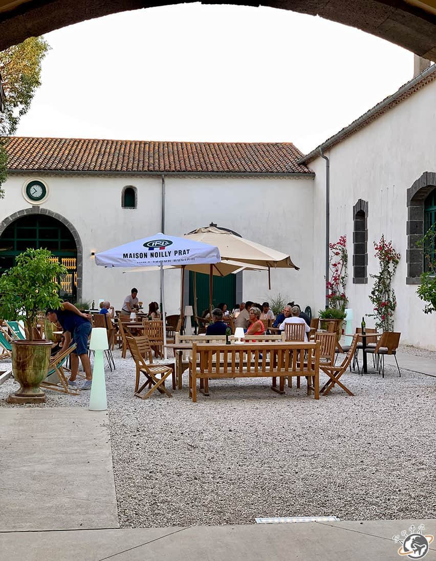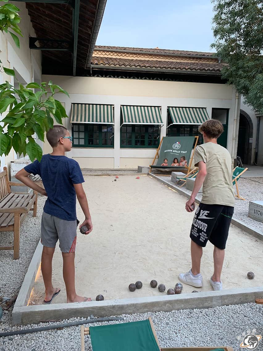 Et pourtant, derrière la boutique, où on peut donc acheter plein de Vermouth, se cache cette très jolie cour intérieure avec des tables en bois et un terrain de pétanque. La nôtre est juste à côté d’un Dj qui mixe à la demande. On commande boissons et tartinades bio, quasi toutes végétariennes, pendant que les nados jouent à la pétanque. Enfin essaient car les filles ont décidé de les embêter en prenant tous les cochonnets 😂