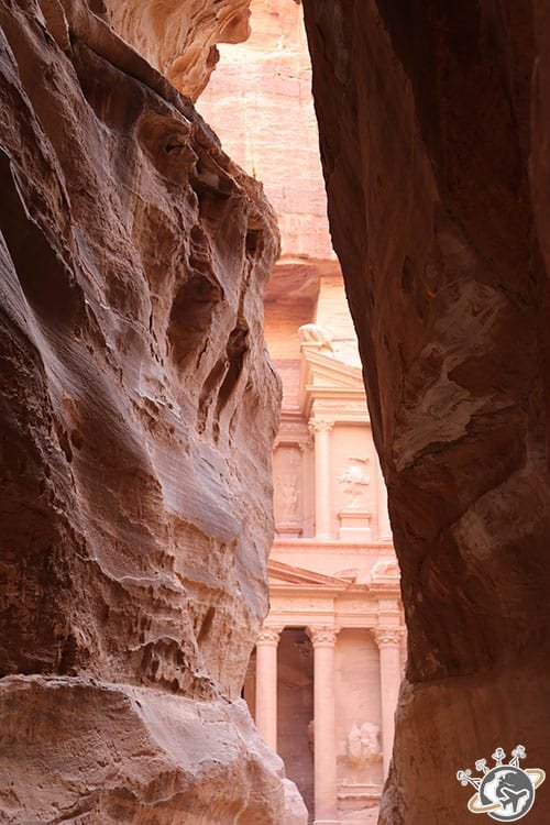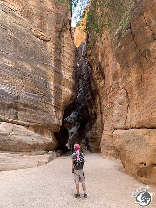 Nous avions hâte de nous engouffrer dans le Siq, le défilé en arabe, la fameuse faille naturelle. Ses magnifiques falaises aux dégradées de rose atteignant 100 m de hauteur s’étendent sur 1 km et demi de long et environ 2 mètres de large.