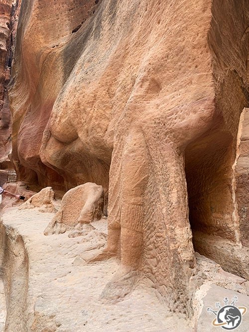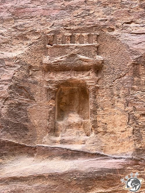 Mazen nous a replongé à l’époque nabatéenne, quand Pétra en était la capitale et que les caravaniers passaient par là, impatients d’atteindre la ville pour se reposer et faire du commerce. Il nous a expliqué les rigoles creusées à même les rochers pour recueillir et faire circuler l’eau, les niches funéraires, les restes de statues et tellement d’autres choses.