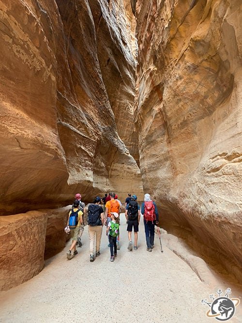 Cet itinéraire a été pensé et amélioré au fil du temps pour les petits marcheurs à partir de 6 ans. Le rythme est moins soutenu mais pas moins intéressant pour autant car il mixe les incontournables comme Pétra et le Wadi Rum avec des sites moins connus comme le canyon et Little Petra où nous étions quasi seuls.