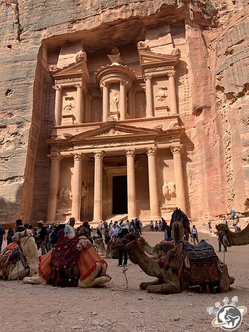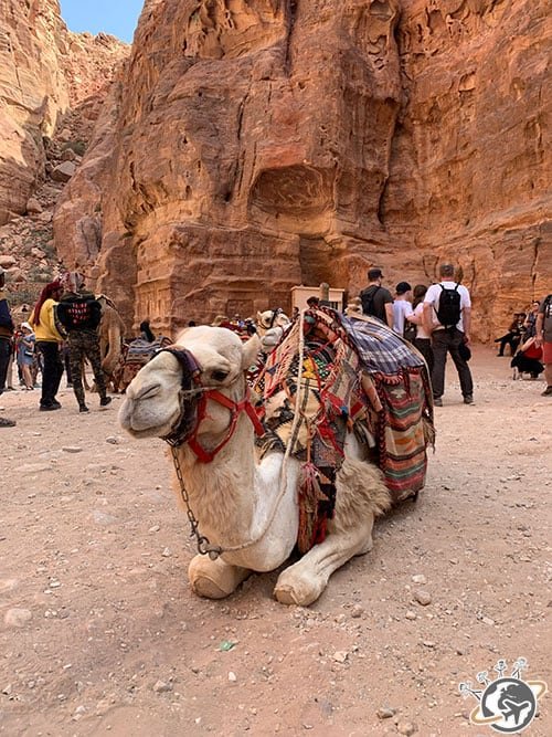 Les gens se bousculaient pour avoir leur photo devant la façade et avec les dromadaires, qui eux attendaient le fainéant touriste. Ça gâche un peu la majesté du site.