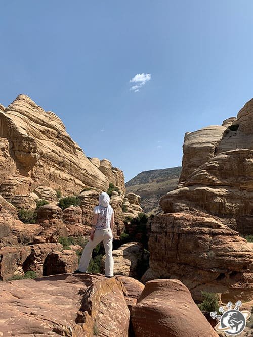 - j’étais en pantalon et tee-shirt, sauf dans le canyon où j’avais un short validé par notre guide car nous étions loin de la population,