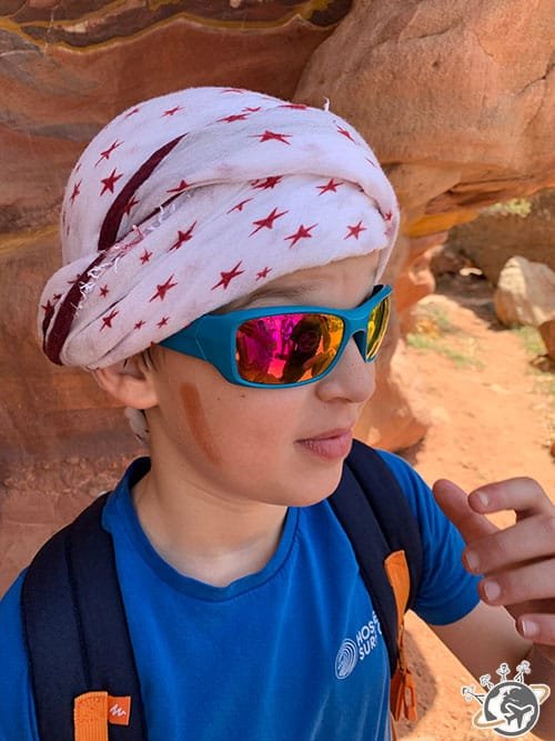 - pantalon de trek : j’en ai acheté un pour moi, j’ai eu trop chaud donc je l’ai porté 2h. Mes pantalons au coton étaient beaucoup plus agréables mais attention au sable/roches rouges, ça tâche et tout n’est pas parti. J’aurais pu en acheter pour les enfants mais le vendeur de Decathlon, qui est allé en Jordanie l’année dernière, m’a dit que ce n’était pas nécessaire. Je confirme.