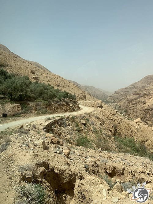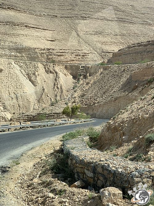 Pour rejoindre la première randonnée de notre trip au départ d’Amman, nous avons pris la route des vers le sud, traversé Madaba et le magnifique Wadi (vallée en arabe) al-Mujib. Une « petite » vallée d’environ 80 kilomètres de long traversée par une route en lacet.