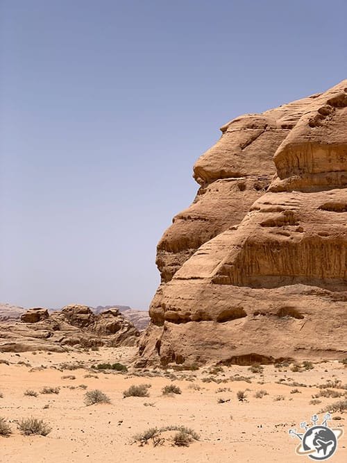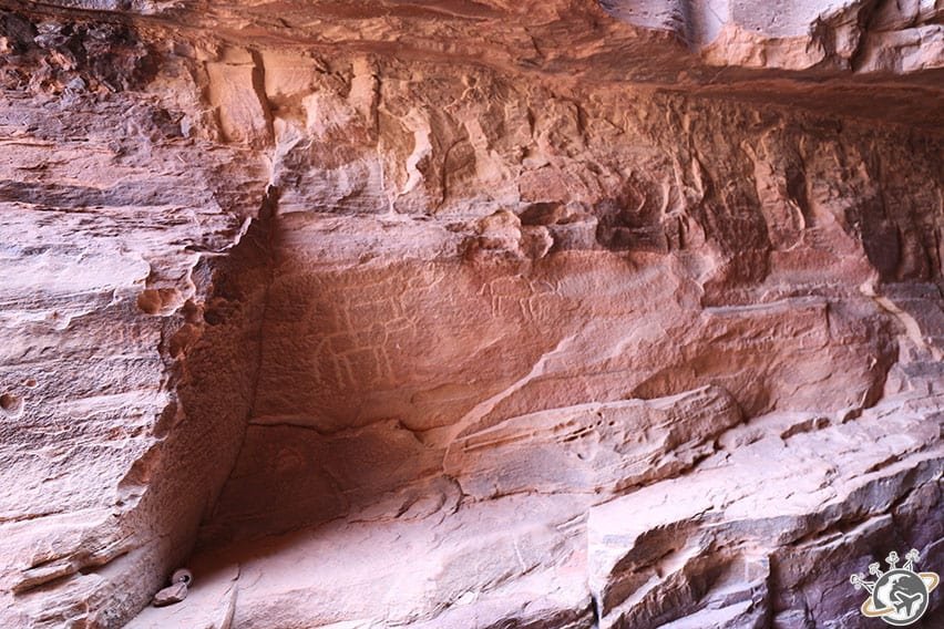 Après un passage obligatoire au visitor center, notre échappée désertique a commencé à dos de 4X4. Personne n’entre avec sa propre voiture dans le désert ! Mazen, notre guide, nous a d’abord fait découvrir une faille qui cache des dessins rupestres puis une source cachée dans la montagne.