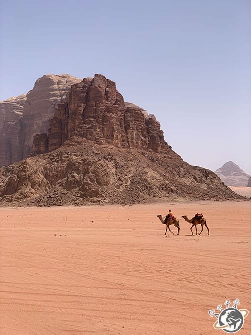 L’arche Umm Fruth est un passage obligé dans le Wadi Rum. Beaucoup montent dessus. Les grands y sont allés, j’ai préféré boire un thé chez le Bédouin installé en face avec Alexane, sa maman et mon 12 ans. Puis au moins 2 douzaines de touristes ont débarqué, c’était le signal pour reprendre notre balade, toujours accompagnés d’un dromadaire.