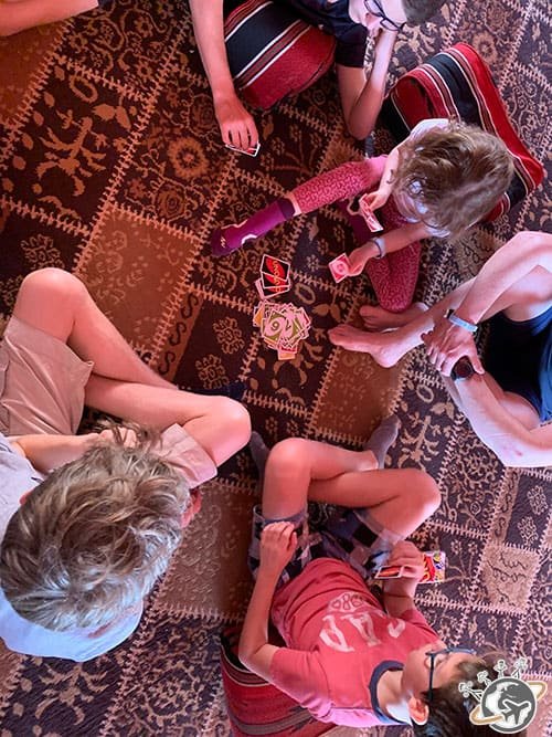 Après le déjeuner, j’ai ressorti le Uno. Cette fois, nous avons joué tous ensemble avec Mazen et les bédouins. L’un des deux savait d’ailleurs très bien jouer et a été redoutable. Le deuxième, plus timide, n’osait pas essayer, mais a fini par nous rejoindre, encouragé par Alexane.