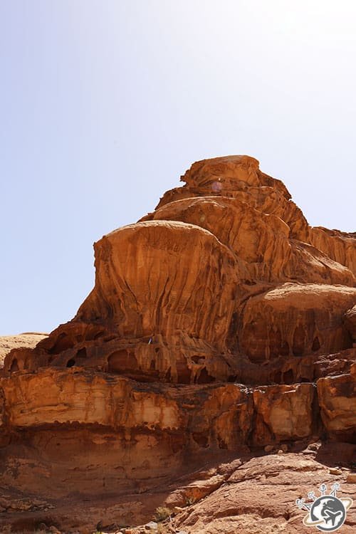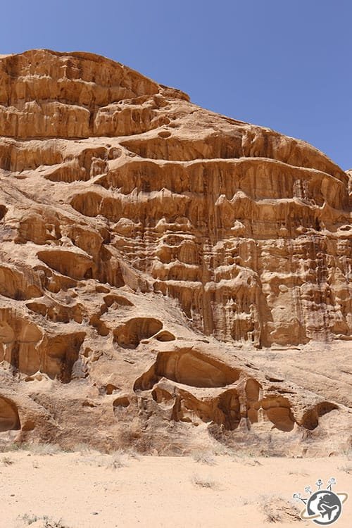 Cette première marche dans le désert du Wadi Rum a duré 3h, pause goûter sur un spot incroyable à l’ombre d’une petite arche comprise. C’était si beau qu’on n’a pas vu le temps passer et comme un petit vent nous a fait l’honneur de nous accompagner, c’était top.