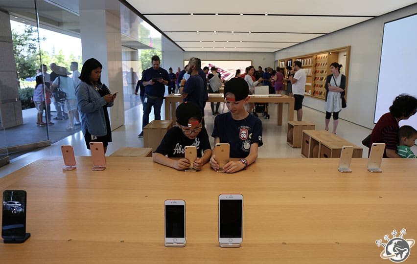 Saviez-vous que le magasin du siège d’Apple est le seul qui vend des goodies ? Moi non. Népoux oui. Et en bon geek qu’il est, un goodie Apple, on ne passe pas à côté sans l’acheter.