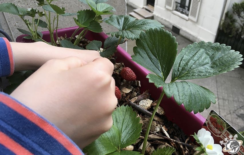 Les Nains et moi nous sommes lancés récemment dans la culture de fraises, de tomates cerises, de basilic et de menthe. Une culture qu’on peut qualifier de raisonnée si on prend en compte le fait que nous avons rapporté 6 des 12 plants de tomates cerises après avoir constaté qu’il fallait les écarter de 30 cm et qu’il fallait donc 6 jardinières rien que pour elles… Je vous ai raconté nos péripéties de jardiniers en herbe ici.