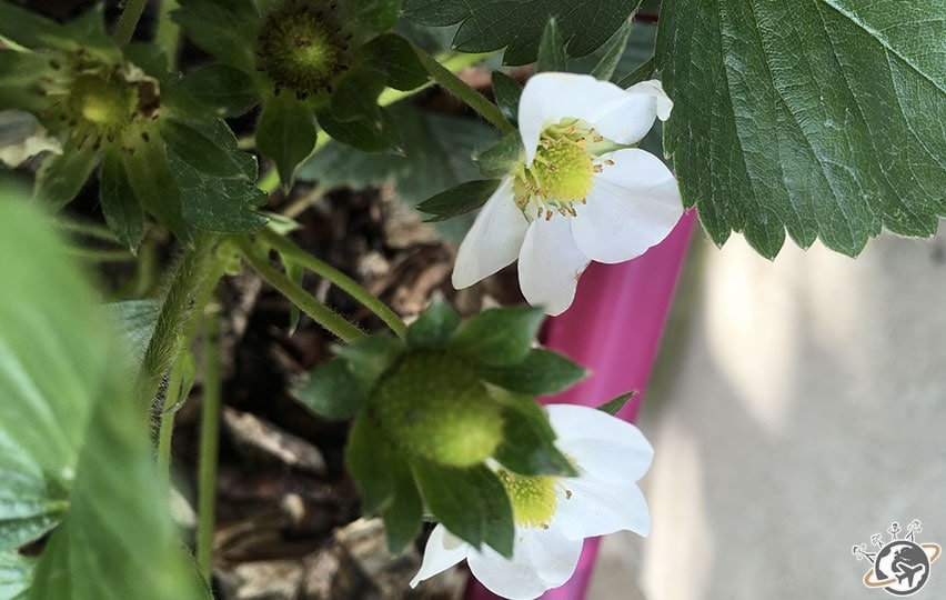 Les 6 plants de fraises s’épanouissent dans 2 jardinières.