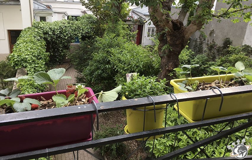 Nous les avions mises à 2 fenêtres différentes mais comme des fraises sont apparues plus vite à gauche qu’à droite, sans doute qu’il y a plus de soleil et/ou moins de vent ?!?