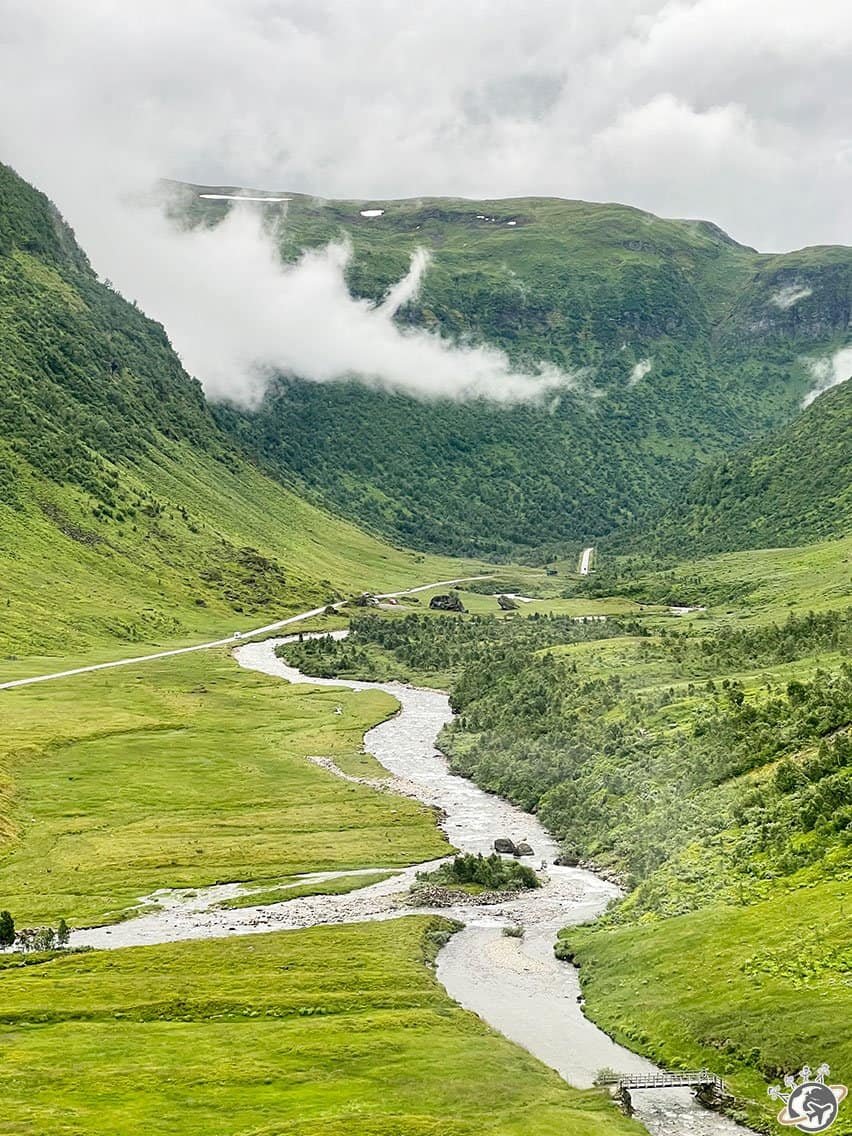 Nous avons continué notre route et traversé le mont Vikafjell entre lacs de montagne, montagnes imposantes, rivières sinueuses et tunnels. Le plus long, le tunnel de Vikafjellet, fait 11 km (c’est long) !