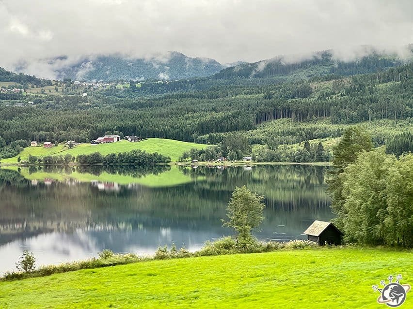 À Myrdal, changement de train. J’avais lu sur un blog qu’il fallait se mettre à droite dans le train, mais je n’avais pas pensé au fait que la ligne allait dans les 2 sens… donc