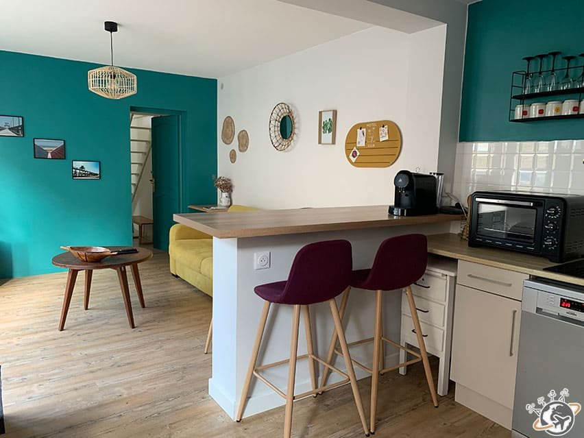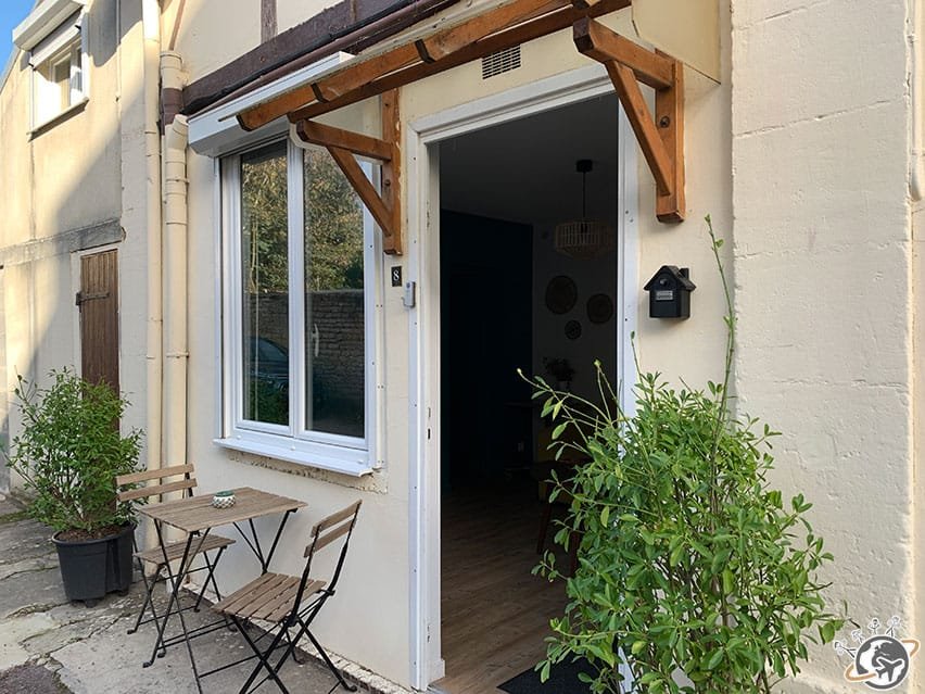Il a trouvé une très chouette petite maison de ville sur Airbnb. Située dans une impasse, nous étions au calme, quasiment en face de la mairie et de sa baleine et à 100 m de la mer ! PARFAIT.