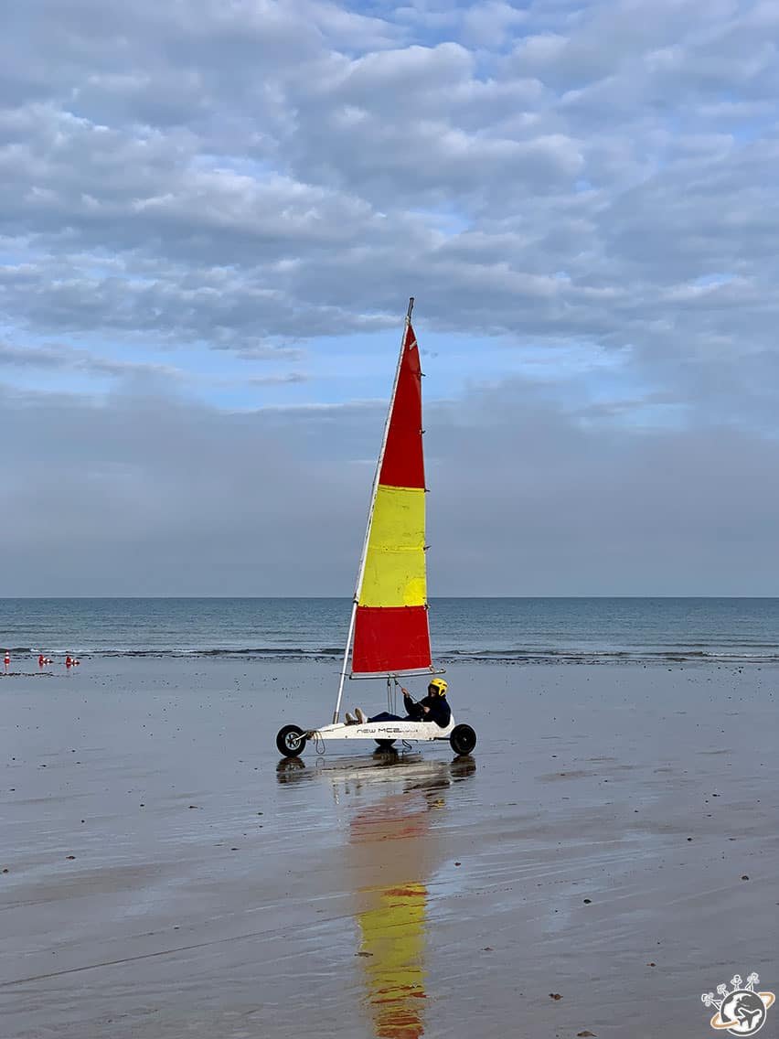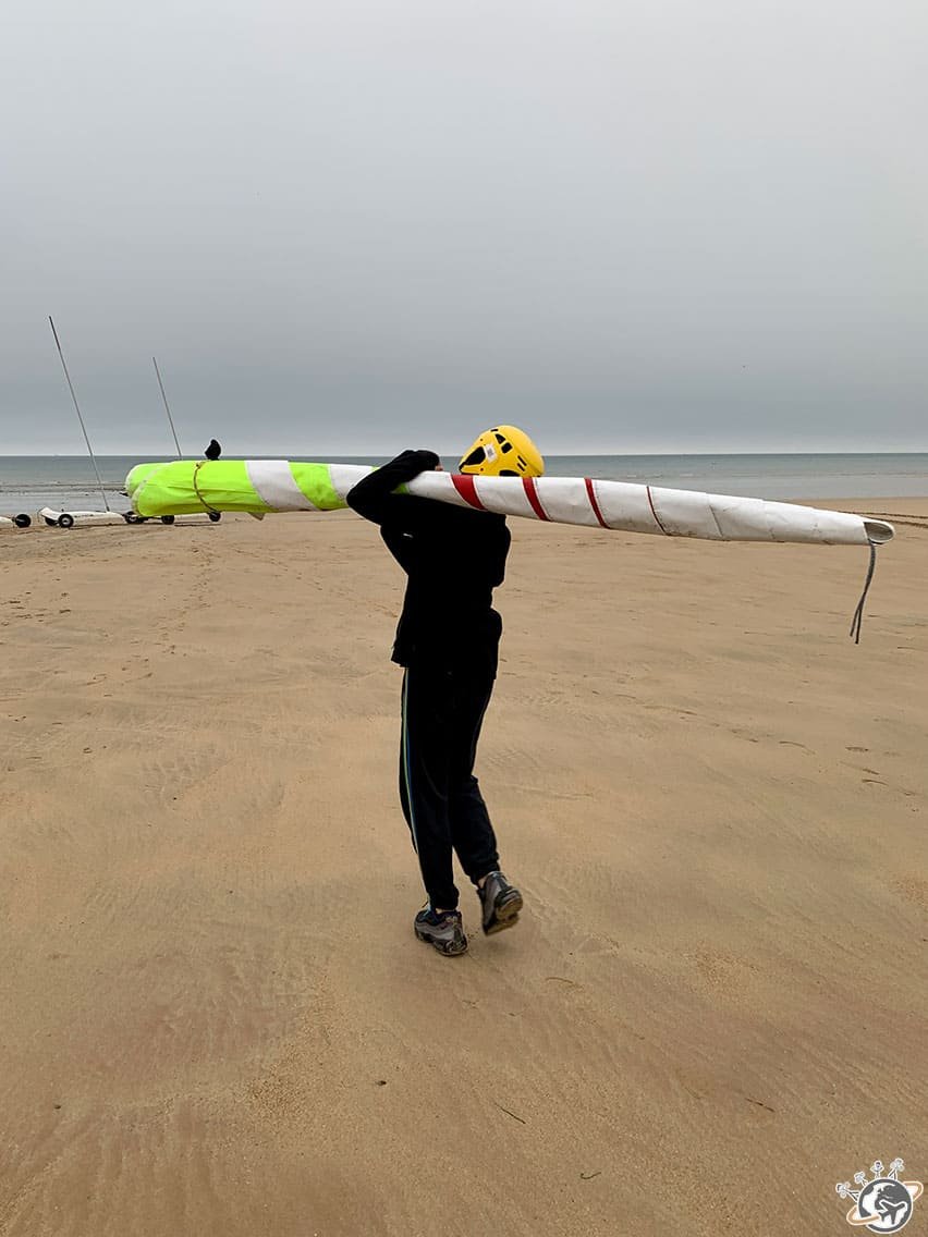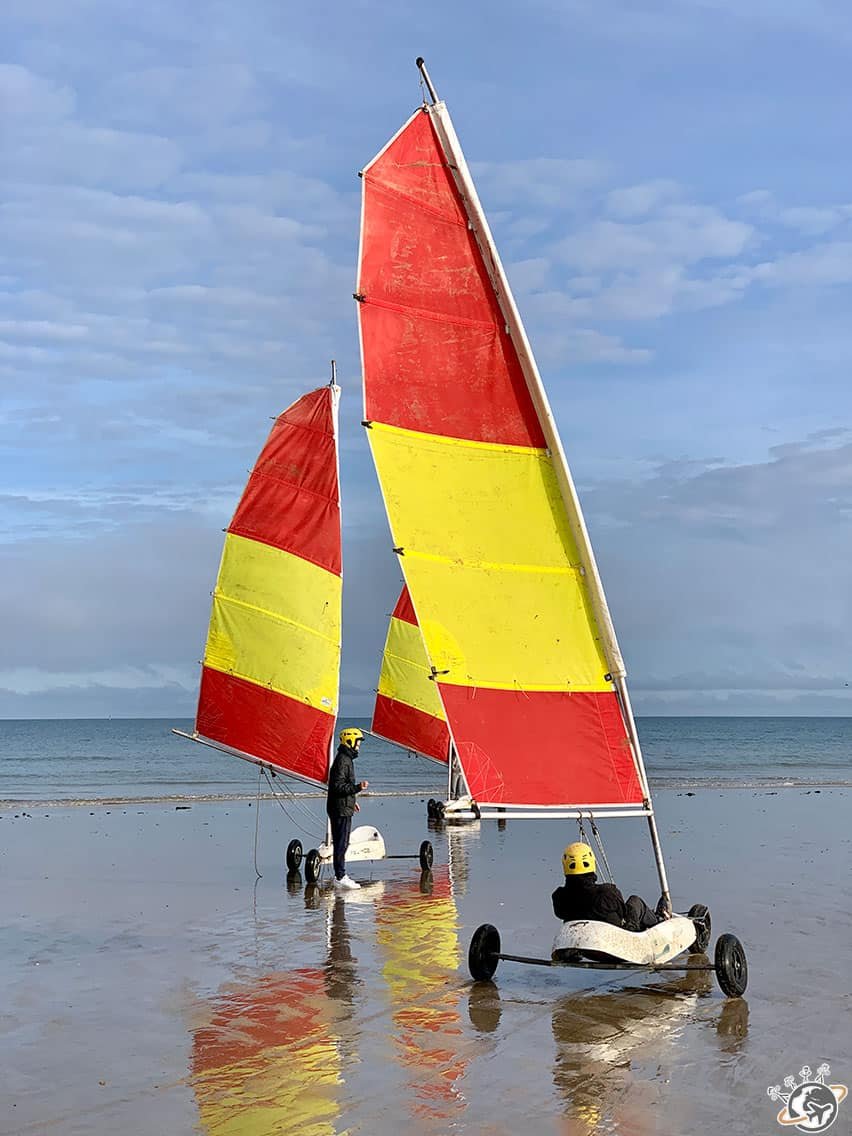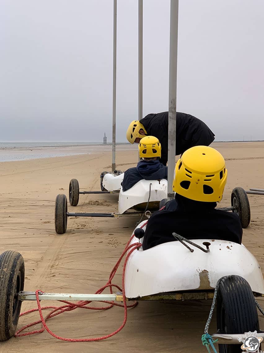 Heureusement, le montage de la voile sur le char nous a suffisamment réchauffés pour ne pas y penser et nous nous sommes lancés sur la plage. Plutôt timides au début, chacun a pris de l’assurance et nous avons vite enchaînés les tours !
