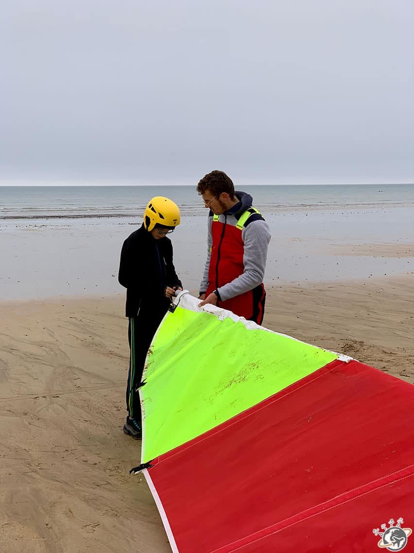 Nous sommes arrivés pas super réveillés, il n’était que 8h30, mais motivés à l’école de voile de Courseulles-sur-Mer pour une initiation au sport local. La relative fraîcheur et la petite pluie m’ont rappelé qu’on était bien en Normandie et que des polaires n’auraient pas été de trop sous les coupe-vents… Des gants aussi. Nous étions les seuls à ne pas en avoir, en mode touristes quoi 😀