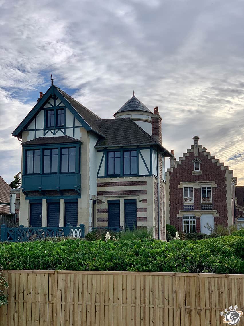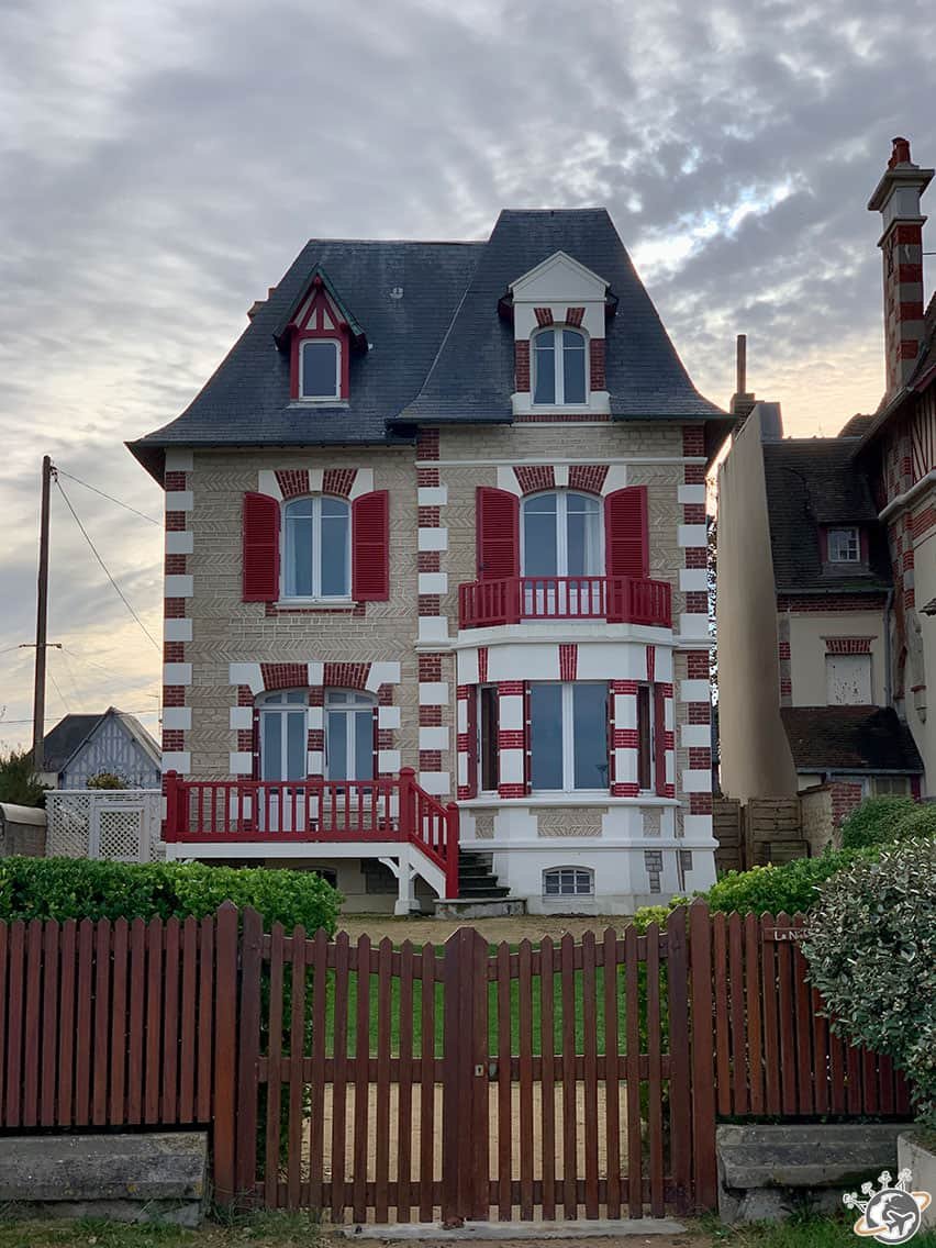On aurait pu marcher sans but précis, perdre nos regards à l’horizon, mais cela aurait dommage de ne pas regarder les magnifiques maisons normandes qui longent les plages. Elles sont particulièrement belles entre Lion-sur-Mer et Hermanville-sur-Mer. Beaucoup sont dans des tons de rouge-bordeaux et blanc. Et puis il y a La Bluette, très différente dans les couleurs et les formes, un peu « gaudiesque » sur les bords.