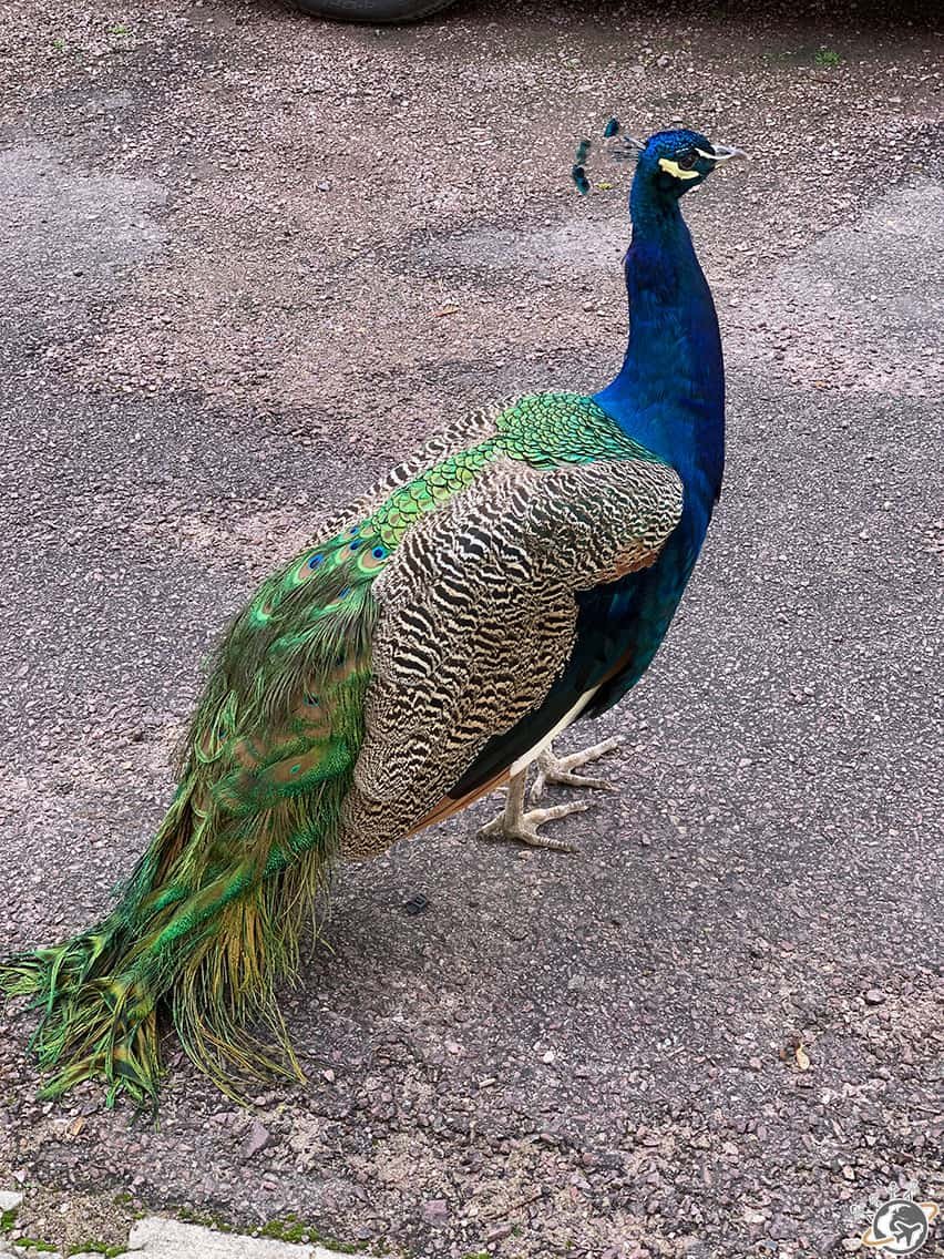 Dans le parc vous croiserez des canards et surtout des paons en liberté. Des paons qui aimaient bien se dégourdir les pates dans l’allée de notre maison, puisqu’on les voyait tous les matins devant nos fenêtres