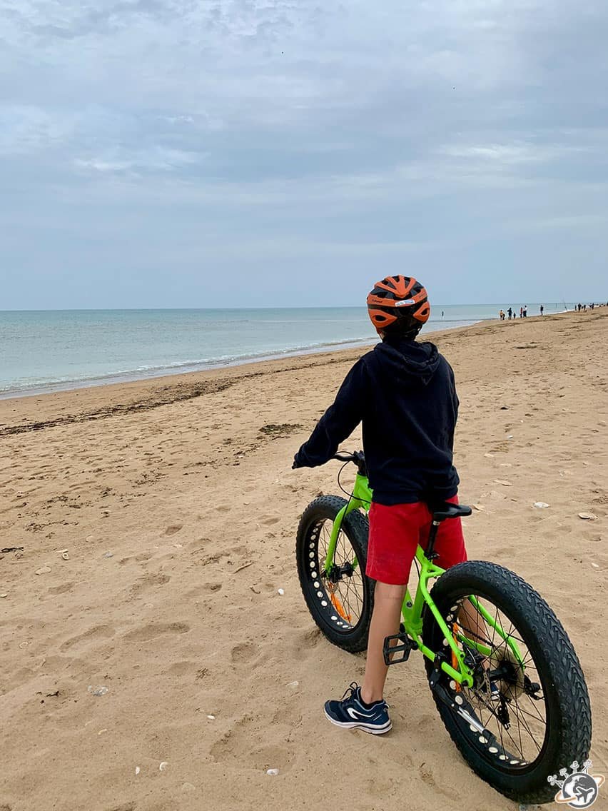 Et comme je vous le dis souvent, j’adore commencer mes voyages par une découverte à 2 roues.  Alors, on a fait comme d’hab’ et on a suivi les promenades de Courseulles-sur-Mer à Saint-Aubin-sur-Mer, soit environ 12 km aller-retour.