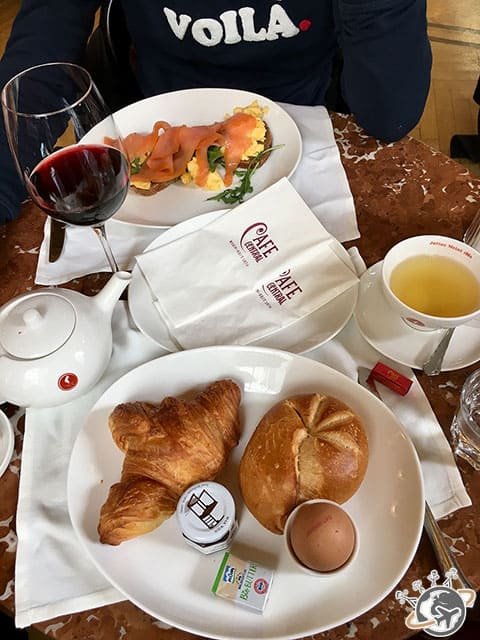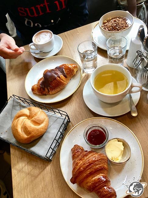 Les boulangeries Ströck sont revenues plusieurs fois dans mes recherches. Nous y avons donc pris un petit déjeuner sur le chemin de notre première étape. Une table était libre, mais mieux vaut réserver. Je ne suis pas fan du salé le matin, donc je suis restée très classique dans mes choix avec notamment un croissant.